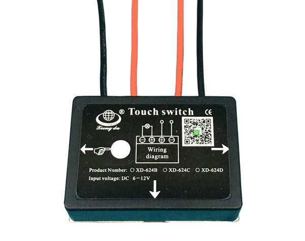 接線方式:其中一條紅線和黑線接“+、-”DC:6-12V輸入,另一條紅線接LED燈 “+”極,黑線接LED燈“-”極,黑色的觸摸頭安裝在木材背面。 (具體參考開關(guān)接線圖) |